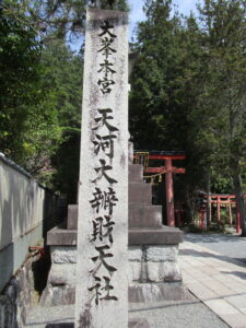天河大弁財天社を訪れ、能を舞って奉納しました。